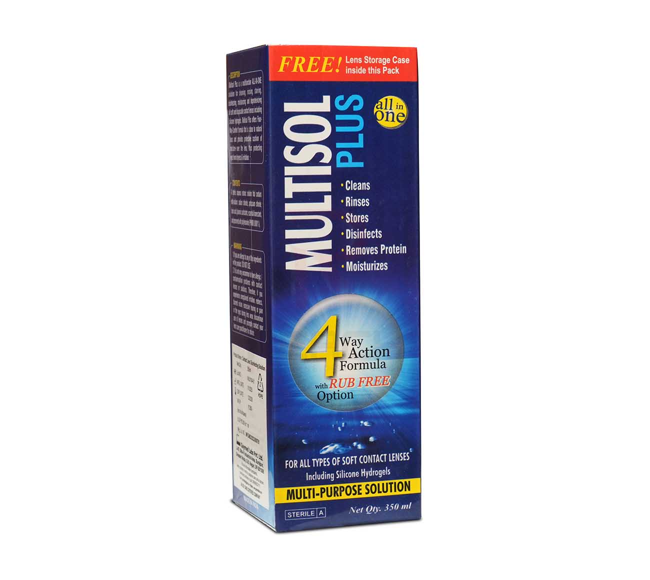 Description- 1 unit of 350 ml bottle + 1 contact lens case.Multisol is a multifunctional all-in-one solution for cleaning,